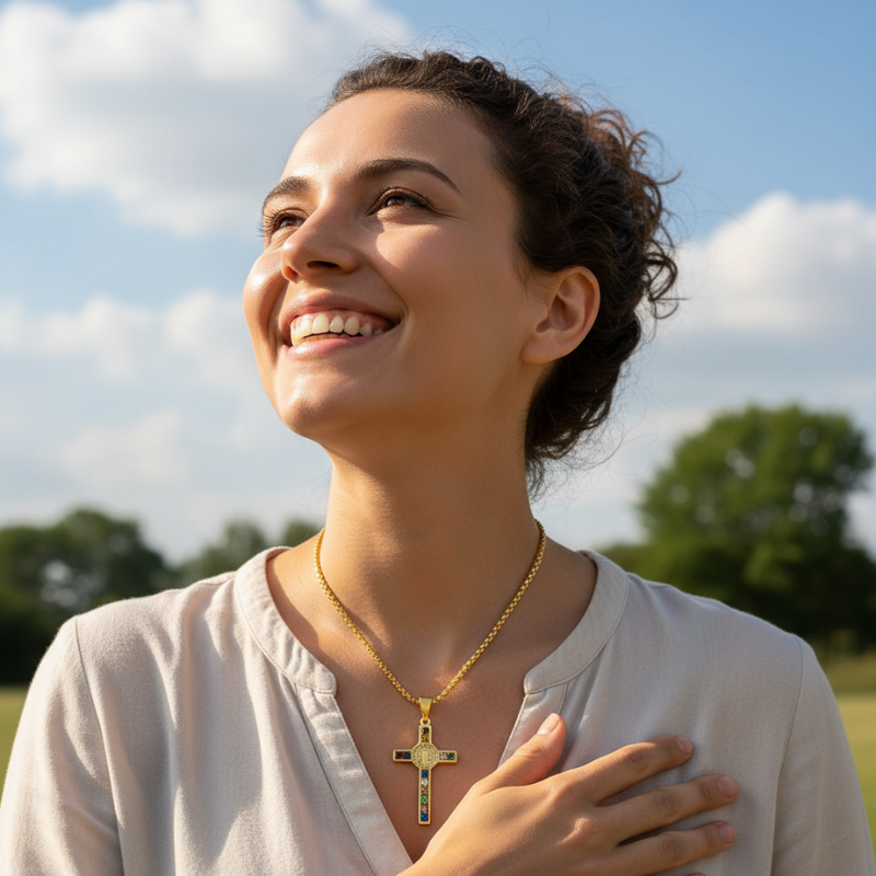 Let the Divine Light Cross™ rest upon your chest as a symbol of unwavering faith — because those who carry the cross, carry victory.